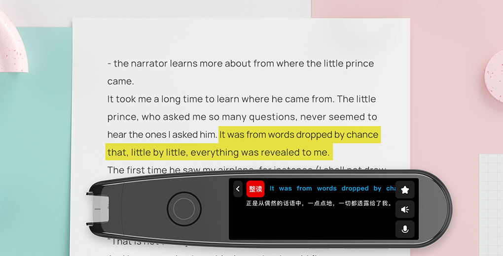 实时动态检测并识别用户手指所指的单词、汉字、拼音,输出对应生字词释义与语音,帮助孩子认识生字词,减轻家长辅导负担,支持任意纸质书本文字识别